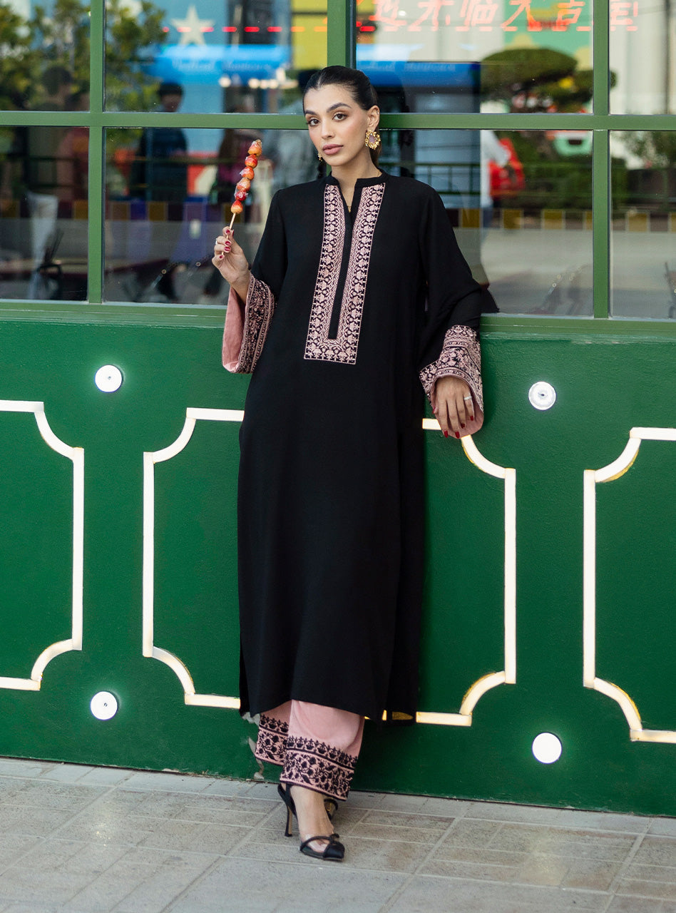 Dry clean recommended. Iron clothes at moderate temperature. Store outfit in the garment bag provided.