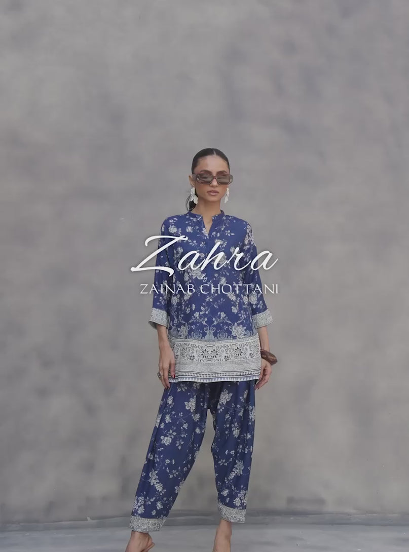 This indigo blue printed set is pure Sunday Reset vibes, effortlessly chic, ridiculously comfortable, and totally photogenic. Made from soft, cosy viscose, the print is a dreamy mix of white florals that feel both vintage and completely fresh. The relaxed-fit kurta and coordinating trousers give you that polished, long-line look. Finished with a beautiful white contrast trim, this is your go-to for turning a casual day out into a major style moment.